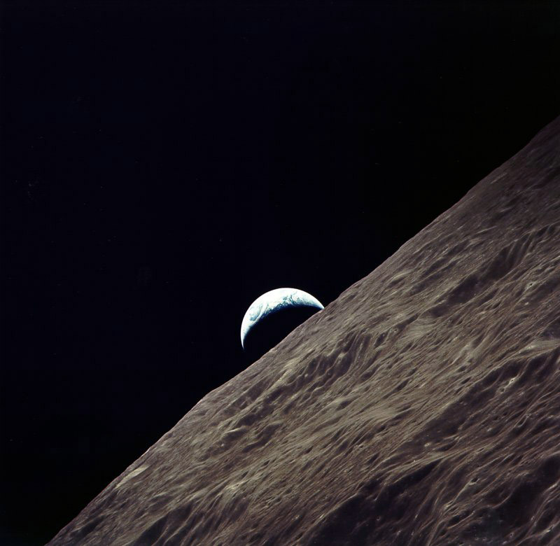A spectacular view of the Crescent Earth over the Moon, taken from Apollo 17 |