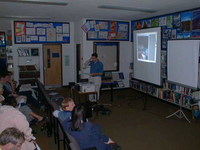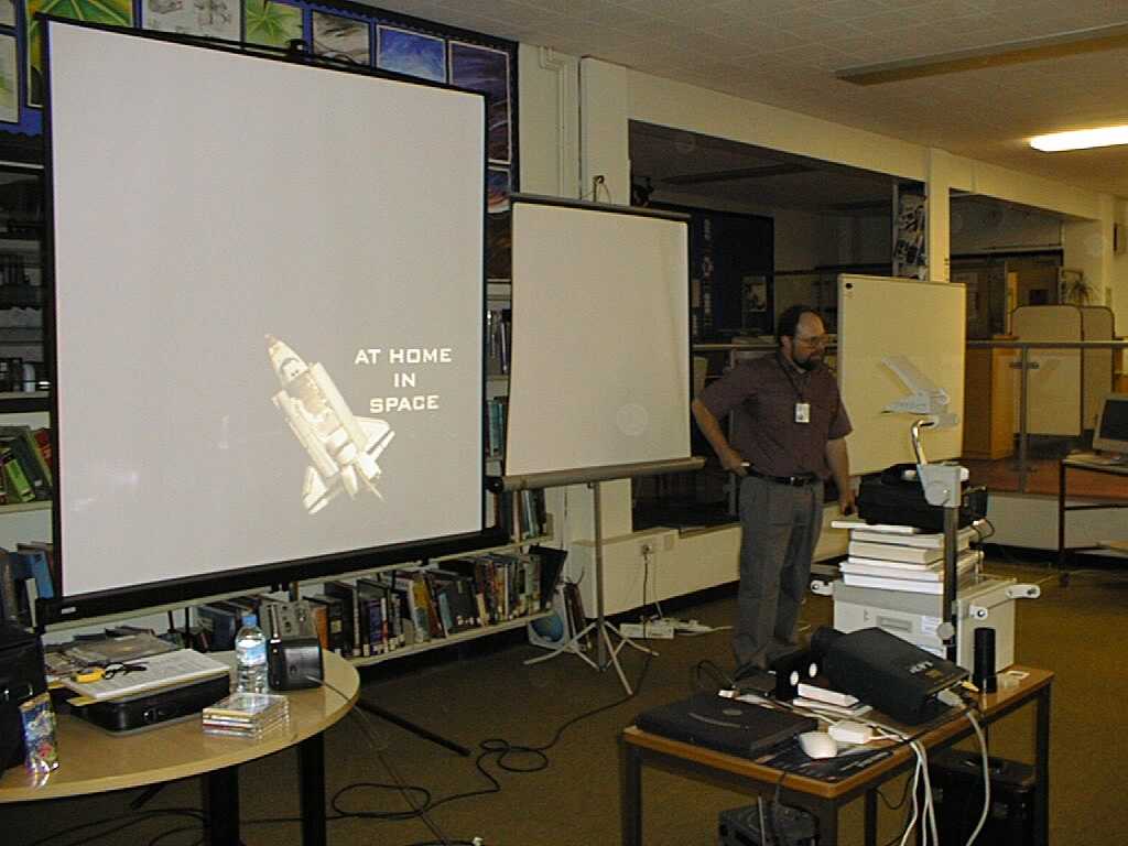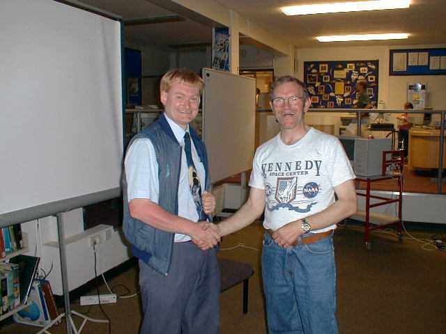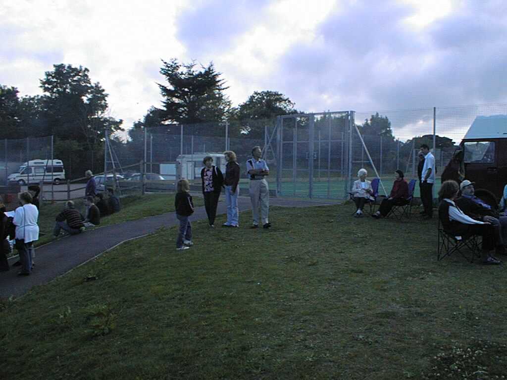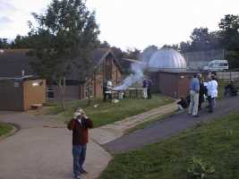 The lecture programme commenced at mid-day with a fascinating and humorous explanation of what it's like to be "At Home in Space" presented by our special guest David Shayler. David is a prolific space and astronomy author, including titles such as "Disasters and Accidents in Manned Space Flights", "Gemini - Steps to the Moon" and "Skylab - America's Space Station". He also co-authored with Rex Hall on "The Rocket Men - Vostok & Voskhod, The First Soviet Manned Spaceflights". The next two talks (either side of lunch) were by TAS chairman David Norman. The first examined some of the amazingingly detailed images from the new advanced camera on board the Hubble Space Telescope. The second looked at the techniques used to detect 'extrasolar' planets (those around stars other than our Sun). Dave presents a monthly spot covering spaceflight and astronomical events on BBC Radio Devon. The next talk was by John Parratt of North Devon Astronomical Society. John covered the past history of the North Devon AS and looked forward to its future plans for a major new observatory. This was followed by a presentation from Exeter Astronomical Society on their successful use of video cameras to capture dynamic astronomical events such as lunar occultations. After a break for tea our second major talk of the day was presented by astronomical writer Paul Money. Paul was here at the school for the 1999 eclipse and has written many articles for the astronomical press (including one featured recently in "Astronomy Now" on his completing a full Messier Marathon down at COAA in Portugal). The wide-ranging subject of Paul's talk was "The Wonders of the Universe!", and took us on an illustrated tour from the viewpoint of a photon of light travelling from the farthest reachs of the universe to the Earth. To finish off the lecture programme and prepare us for our evening of observations, Dr Chris Proctor (TAS Observations Secretary) did a talk on 'The Night Sky'. Chris has done a lot of excellent work with both conventional film photography and CCD imaging over the years. Many of these images feature in the gallery section of the TAS web-site at http://torbayastro.org.uk. At 7pm the barbeque got under way. As last year, this proved a great social success with a number of family guests visiting us for the evening session. At 8pm the excitement really began with the rocket launching event! Several rockets were brought along from the school, members of the society and visitors. In fact, we had two launch pads set up and were still pushed to get all the rockets launched while the light lasted! Everybody loved this and all present helped with the countdowns! Finally, the observatory was opened up and observations of the moon and other night-sky objects began. We were also presented with the possibility of seeing a close fly by of a near-Earth asteroid (2002 NY40) during the night and early hours of Sunday morning. Our second AstroWest went very well, with much better weather than last year. Once again the campers all said how much they enjoyed the weekend and wanted to come back next year. Here's looking forward to AstroWest 2003! |