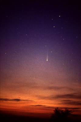 Taken from Orley Common, Ipplepen, Devon on 1996 April 20th at 20:30 UT with a 20 second exposure using an 85mm, f1.9 lens onto Ektachrome 400 uprated to 800 iso. Scanned at 200dpi.