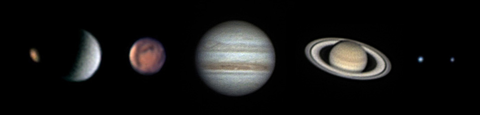 There's a fair difference in sharpness between the images as some (particularly Mercury) were taken when they were very low in the sky.