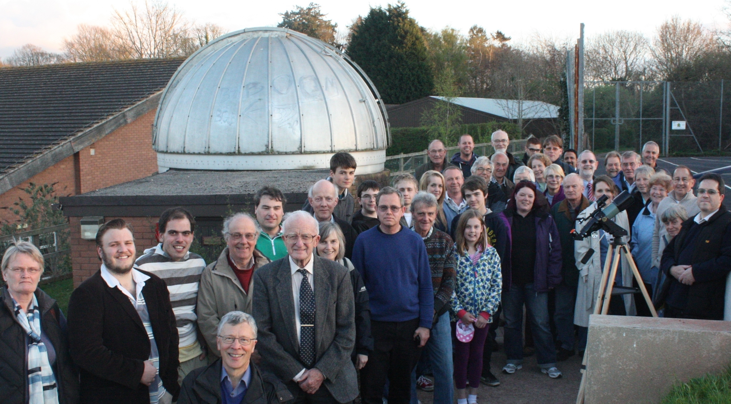 The Torquay Boys' Grammar School ObservatoryLocated in the grounds of Torquay Boys' Grammar School, the 'Torbay Observatory' houses a 19.2" (0.5m) Newtonian Reflector. The building also incorporates an annex in which dark-room, computing and storage facilities are available. Since it was opened (in 1989) by Heather Couper, the observatory has been in regular use by the school itself (for the teaching of Astronomy); by members of the Torbay Astronomical Society; for observational evenings by visiting scout, guide and other groups and on the monthly Public Open Evenings (see the TAS Programme). This photograph was taken at the observing meeting on the evening of Thursday Apil 12th, 2012. |